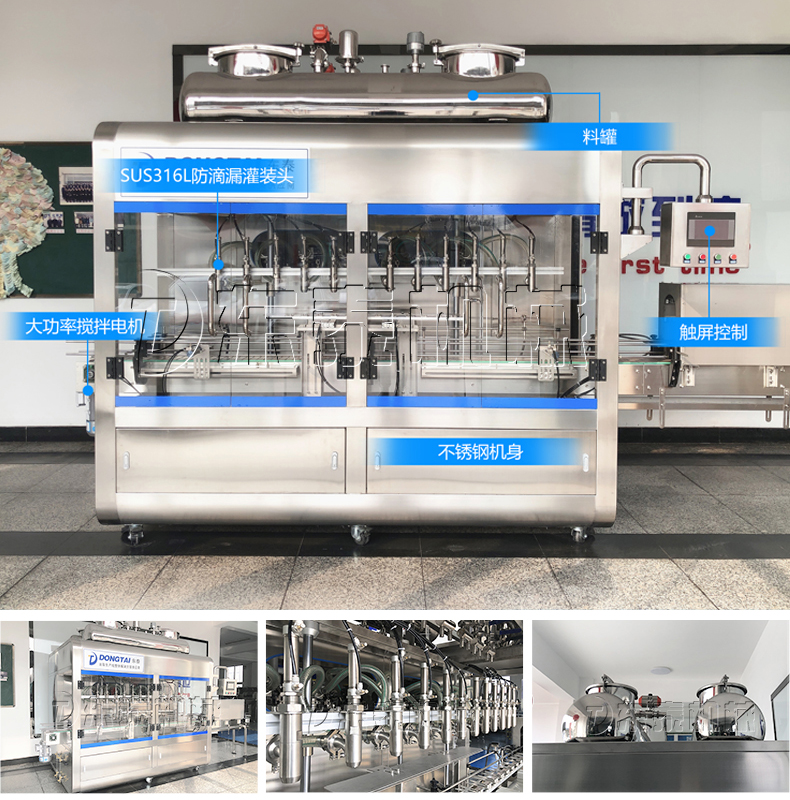 3、  該設(shè)備在設(shè)計(jì)上大大縮短了下料斗到灌裝頭的灌裝距離,克服了含油量大的物料(如:含芝麻粒的辣椒油)在灌裝過程中出現(xiàn)的有些瓶油多,有些瓶醬多的灌裝誤差大的缺點(diǎn)。